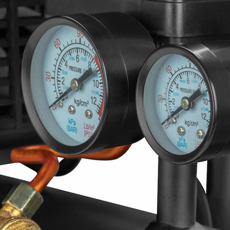 به ظرفیت 10 لیتر؛ ساختهشده از مواد باکیفیت و با طول عمر بالا؛ دارای حداکثر فشار کاری 8 بار؛ هوای خروجی 200 لیتر بر دقیقه؛ دو گیج فشار به منظور نشاندادن فشار درون مخزن؛ دارای نشانگر میزان روغن در بالای تانکر
