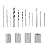 • سایر متعلقات: متههای پیچشی، متههای سنگی، متههای شیشه، متر، کاتر ABS، رابط، چسب برق، متههای CRV، سوکتهای ¼ اینچ، جعبه پیچ و رول پلاک، 10 عدد رولپلاک و 10 عدد پیچ