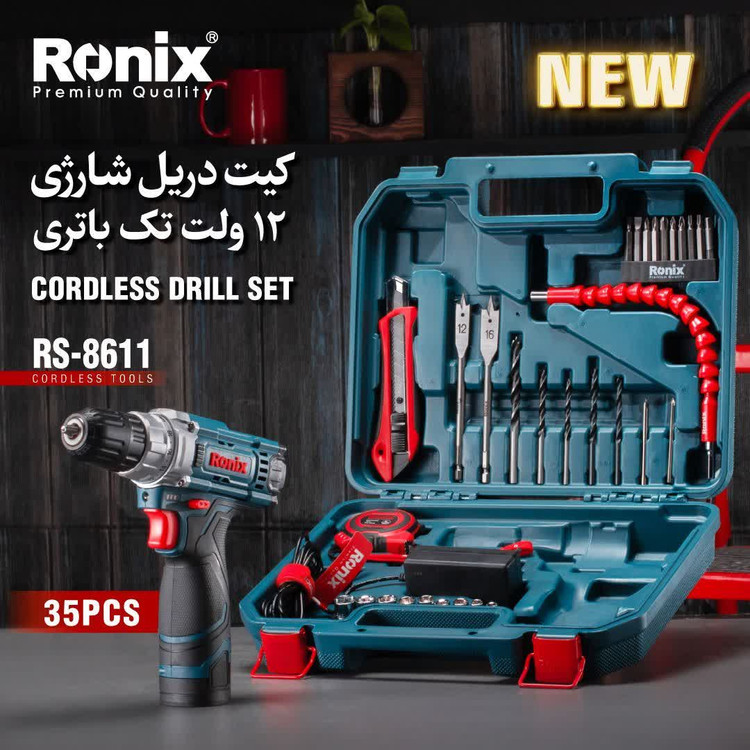 کیت دریل شارژی 12 ولت تک باطری 35 پارچه-RS-8611