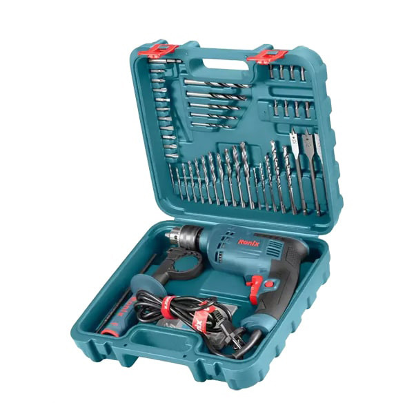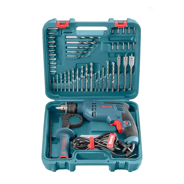 ست ترکیبی دریل برقی رونیکس مدل RS-0006: مجموعهای از یک دریل چکشی و انواع بیت، پیچ و رولپلاک