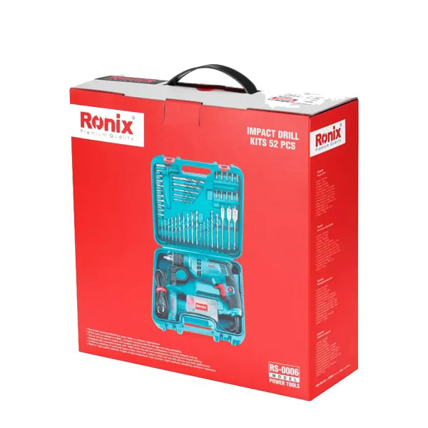 موتور دریل چکشی رونیکس موجود در کیت RS-0006، با توان 750 وات، ولتاژ 240-220 ولت و فرکانس 60-50 هرتز کار میکند. این دریل قادر است سرعتی در محدوده 2700-0 دور در دقیقه را در حالت آزاد ایجاد کند.