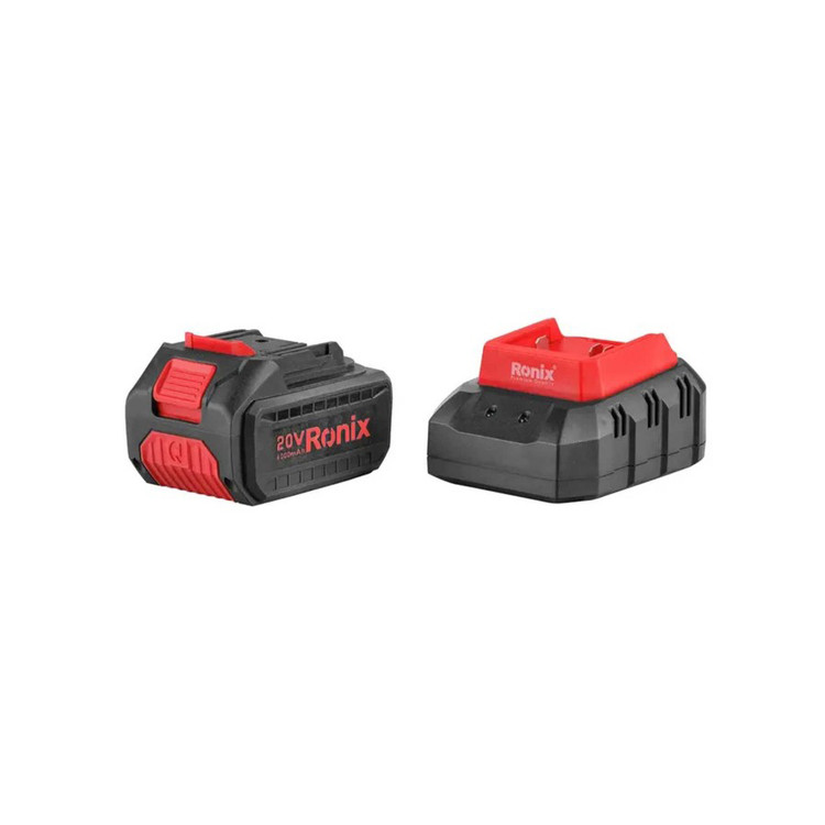 اره گردبر 8650 رونیکس با باتری لیتیوم-یونی 20 ولت 4 آمپر ساعتی و شارژر ارائه میشود.