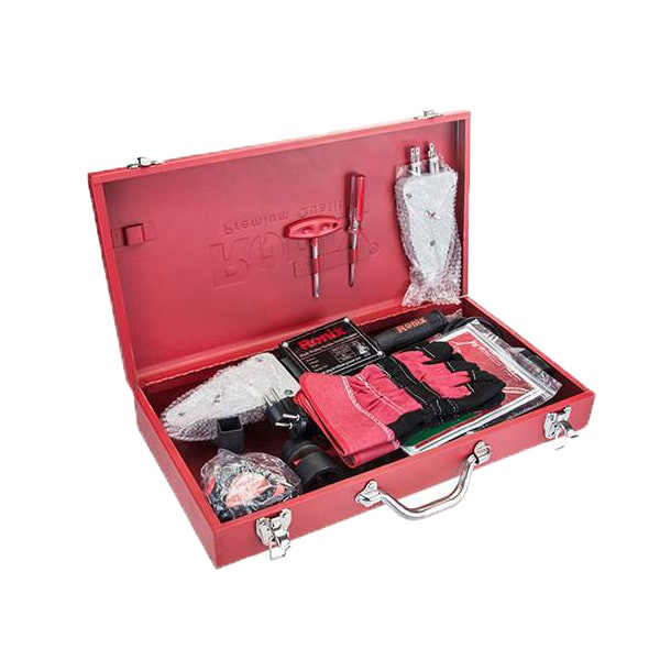 ارائهشده در کیف فلزی مستحکم جهت محافظت بیشتر از دستگاه در حین حمل و جابهجایی در مکانهای مختلف؛ به همراه اقلام زیر: یک عدد راکت اضافه، دستکش ایمنی، متر 5 متری، قیچی PVC بُر بزرگ، آچار آلن، پیچگوشتی، دو عدد سوکت 20 میلیمتری، 2 عدد سوکت 25 میلیمتری، یک عدد سوکت 32 میلیمتری، یک عدد سوکت 40 میلیمتری و سیم سیار 3 متری، پایه. تنها تفاوت دستگاه جوش لوله سبز 4401-RH رونیکس با دستگاه جوش مشابه خود یعنی RH-4400 در برخورداری از همین متعلقات همراه است.