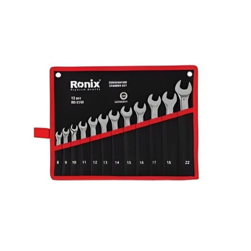 ست آچار 12 عددی یک سر تخت یک سر رینگ کیفی مدل RH-2158 رونیکس در سایزهای 8، 10، 11، 12، 13، 14، 15، 16، 17، 19 و 22 میلیمتری ساخته و به بازار عرضه شدهاند.
