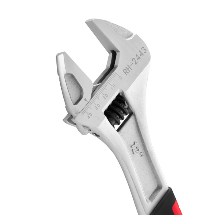 آچار فرانسه مدل RH-2443، دارای دسته پلاستیکی TPR است تا راحتتر بتوانید آن را در دست بگیرید و کار کنید. این آچار با روکش پلاستیکی و سطح کروماندود، در برابر زنگزدگی و سایش مقاوم است.