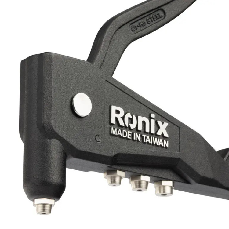 مدل RH-1602 رونیکس دارای یک ضامن فلزی در انتهای دسته است که باعث شده تا در هنگامی که از آن استفاده نمی شود، به راحتی انبر را قفل کرد. همچنین یک آچار به همراه انبر پرچ سوپر رونیکس عرضه می شود که از آن برای تعویض سری ها استفاده خواهد شد.