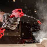 ابعاد کلی این ابزار، 252 میلیمتر است. بدنه این ابزار از جنس POM بوده و به آب و روغن مقاوم است. همچنین، حجم هوای 185 لیتر در دقیقه را با قدرت بالا پاشش میکند. دسته ارگونومیک و ضد لغزش این تفنگ بادپاش، قدرت نگهدارندگی بالایی دارد و مانع خستگی دست کاربر در حین انجام کار میشود.