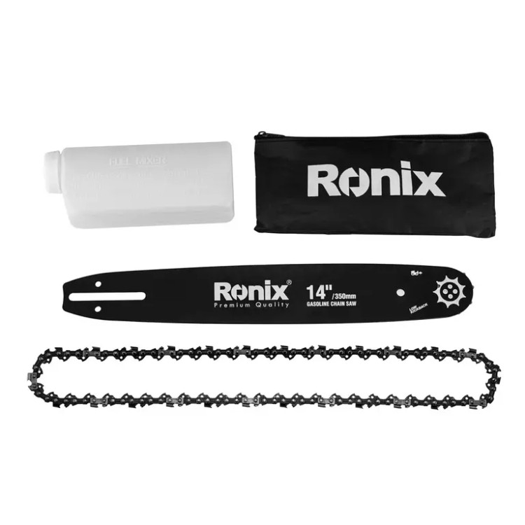 دارای وزن خالص 6 کیلوگرم بدون تجهیزات جانبی؛ ساطور دندانه زنجیرخور به طول 35 سانتیمتر؛ دارای زنجیر طراحیشده توسط رونیکس