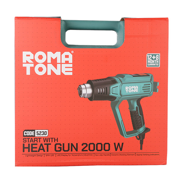 سشوار صنعتی 2000 وات روماتون، دارای قابلیتهای برجستهایست که کار را برای کاربران سریع، آسان و ایمن میکند. یکی از این قابلیتها، وجود یک سیستم خنککننده است که جهت جلوگیری از آسیب به ابزار، تعبیه شده است. این قابلیت هنگام کارکرد مداوم، برای خنک شدن سریعِ سشوار صنعتی عمل میکند. از دیگر موارد ویژة این ابزار، طراحی پایه در قسمت پشت دستگاه است که باعث میشود کاربر در حالت ایمنی بیشتر، حین انجام عملیات متعدد، سشوار صنعتی با حرارت بالا را روی پایه گذاشته و بردارد.