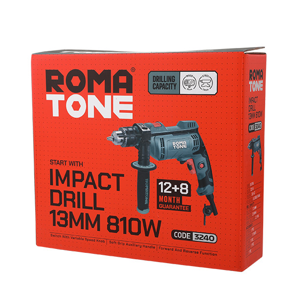 دریل چکشی روماتون، با موتور قدرتمند 810 وات واقعی و سه نظام 13 میلیمتری، وسیلهای مناسب و کاربردی برای انجام سوراخکاری برای بتن، سیمان، فلز و انواع سطوح سخت است. اما در نظر داشته باشید که برای سوراخکاری بر روی فلز، بهتر است ابتدا از قابلیت دریل ساده استفاده کرد تا مته با ضربة چکشی روی سطح فلز، سر نخورد.