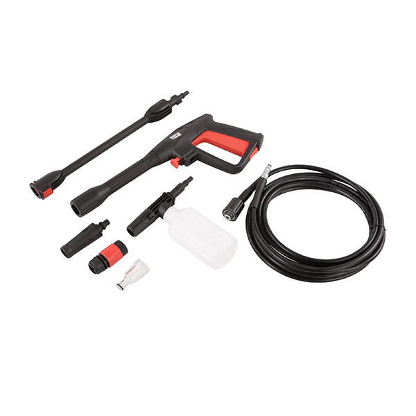 با خرید کارواش خانگی 1400 وات روماتون، مجموعهای از لوازم جانبی مثل تفنگی (گان)، لنس، سری واتر جت، شلنگ، مخزن مایعات شوینده، کوپلینگ (تبدیل اتصال) و فیلتر شیشهای همراه با این دستگاه ارائه میشود.