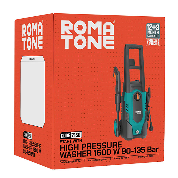 علاوهبر این، کارواش زغالی 1600 وات روماتون دارای تحمل 135 باری خروجی آب است که برابر با حدود 138 لیتر آب بر سانتیمتر مربع است. با اینحال باید توجه داشت که کارواشهای نوع زغالی، برای مصارف سبک و کم تعداد گزینة درستی محسوب شده و استفاده از این دستگاه برای مصارف صنعتی و مشاغل شستشوی همهروزه توصیه نمیشود.