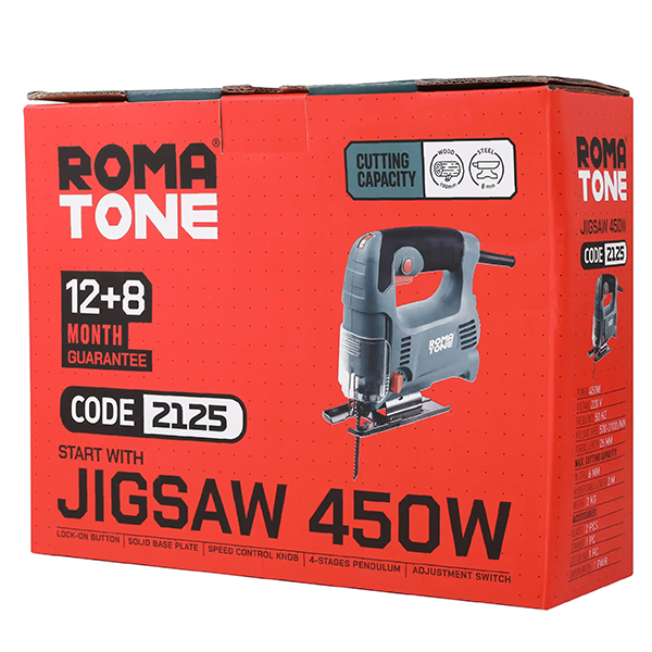 اره عمودبر 450 وات روماتون، دارای دیمر یا کلید تنظیم سرعت کارکرد است که امکان اجرای فرایندهای مختلفی را بر روی مواد متفاوت فراهم میکند. همچنین سطوح کار، با صفحة برش متحرک این ابزار، میتوانند برشهایی با زاویههای مختلف از صفر تا 45 درجه را داشته باشند.