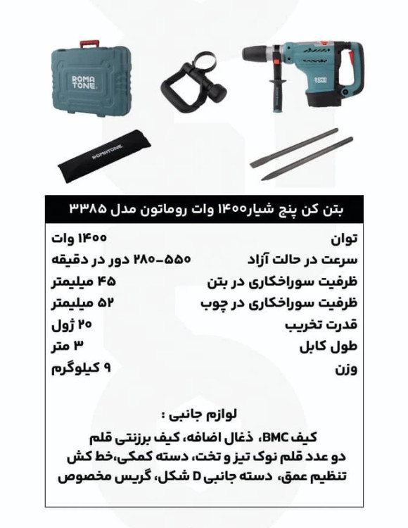 دریل بتن کن روماتون مدل 3385 ظرفیت ۱۴۰۰ وات ۵ شیار