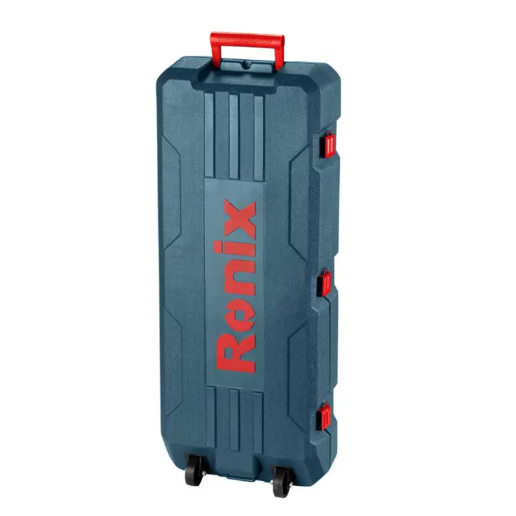 ارائهشده در کیف چرخدار BMC مقاوم به ضربه همراه با دسته جانبی گردان طراحیشده توسط متخصصان رونیکس، یک قلم تخریب 410 میلیمتری نوک تیز، یک قلم تخریب 410 × 30 میلیمتری نوک پهن، آچار آلن، گریس، دو عدد ذغال اضافه