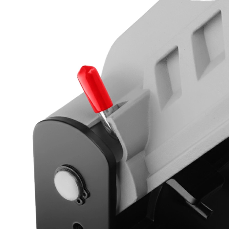همچنین، این دستگاه مجهز به سیستم قفل شفت است که تعویض سریع و ایمن صفحه برش را ممکن میسازد. این ویژگی باعث میشود کاربر بدون نیاز به ابزارهای پیچیده و در زمان کمتر، صفحه را تعویض کند و از هرگونه لغزش یا حرکت ناخواسته صفحه هنگام کار جلوگیری شود.
