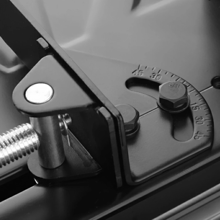 پروفیلبر رونیکس مدل 5905 مجهز به گونیای قابل تنظیم با زاویه 45 درجه است که امکان برشهای دقیق زاویهدار را فراهم میکند. این ویژگی باعث میشود دستگاه برای پروژههای متنوع با نیازهای مختلف برش بسیار مناسب باشد. تنظیم آسان گونیا، سرعت و دقت کار را به طرز چشمگیری افزایش میدهد.