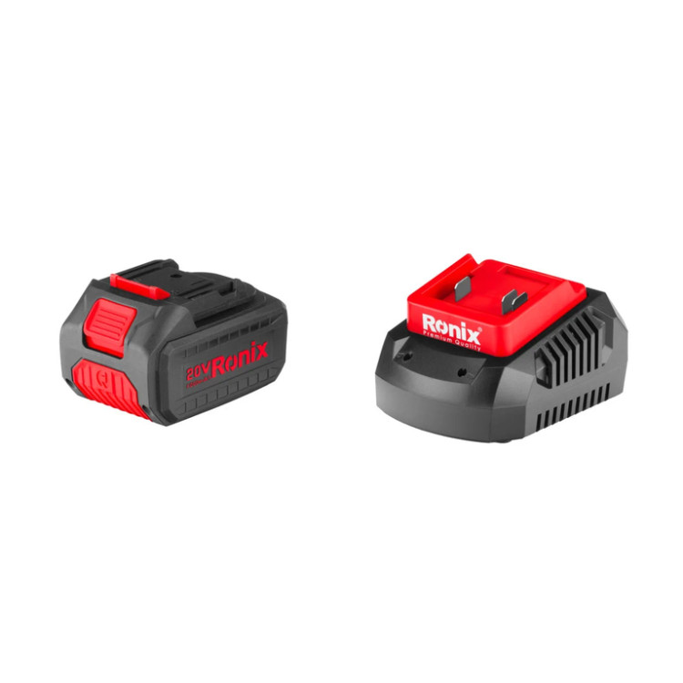 بلوور شارژی رونیکس مدل ۸۶۲۷ از یک باتری لیتیومیونی ۲۰ ولت با ظرفیت ۴۰۰۰ میلیآمپر ساعت استفاده میکند. این باتری در مدت زمان 60 دقیقه به طور کامل شارژ میشود. همچنین این باتری با شارژهای 20 ولت سری 86 رونیکس سازگار است.