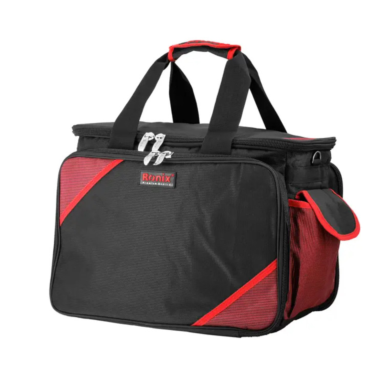 دستگاه اینورتر RH-4607K رونیکس همراه با سیم 2 متری اتصال زمین، کابل 2 متری نگهدارنده الکترود و کیف برزنتی برای سهولت حمل به بازار ابزار ایران عرضه میشود.