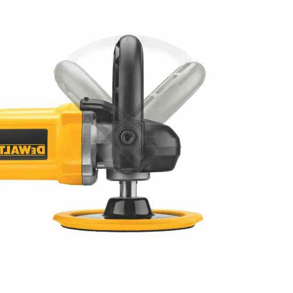 دستگاه پولیش DWP849X دیوالت دستگاهی است که از آن برای صاف و صیقلی کردن سطح مورد نظر میتوانید استفاده نمایید. وزن این دستگاه 3 کیلوگرم است. توان این دستگاه 1250 وات و سرعت گردش آن 3500-0 دور بر دقیقه می باشد. این سرعت متغیر قابل تنظیم بوده و کاربر می تواند در حین کار سرعت دستگاه را تنظیم کند. برای کار کردن با این مدل پولیش باید از صفحه پولیش با قطر 178 میلیمتر استفاده کنید. برای ایمن ماندن از آسیب و صدمه بهتر است قبل استفاده از این دستگاه مهارت های لازم را کسب نمایید. لوازمی که به همراه این محصول ارائه می شود شامل صفحه پولیش، روکش کنفی، دو گونه دسته کمکی و دیسک فابریک و پوست بره می باشد. یکی از این دسته ها صاف و معمولی بوده و دیگری به شکل U می باشد که از آن برای تسلط بیشتر کاربر استفاده می شود. پولیش دیوالت مدلDWP849X یک دستگاه پولیش با کیفیت بالا می باشد. پس از تعمیر کردن و یا رنگ آمیزی سطوح فلزی، از دستگاه پولیش برای براق کردن سطح استفاده می کنند. لازم به ذکر است قدرت این دستگاه بسیار بالا بوده و سرعت گردش آن نیز قابل توجه است. کاربر هنگام کار با دستگاه پولیش باید از دسته کمکی استفاده کند تا عملیات پولیش کاری به صورت راحت تر و ایمن تر انجام شود. لازم به ذکر است دستگاه پولیش ضد آب نیست و از آن بر روی سطوح خیس نباید استفاده کرد. از نصب کردن صفحات برش فلزات و یا تیغه های تراش چوب بر روی دستگاه پولیش باید پرهیز کرد. هنگامی که دستگاه پولیش روشن است نباید آن را به حال خود رها کرد. کاربر باید دست و انگشتان خود را از صفحه پولیش دور نگه دارد.