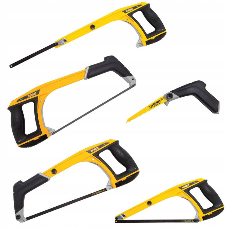 اره کمانی DWHT0-20547 دیوالت - پنج کاره برای کاربردهای همه کاره از جمله تیغ اره 300 میلی متری 24 TPI - 5 کارکرد – کشش تیغه بالا، موقعیت 45 درجه، اره منبت کاری اره مویی، برای فضاهای محدود، اره کم مشخصات - قاب آلومینیومی – استحکام و دوام بالا - ذخیره سازی عملی تیغه اره – برای نگهداری ایمن و راحت تیغه های اره اضافی - تغییر تیغه / کشش بدون ابزار – برای تغییر سریع تیغه و تنظیم آسان کشش تیغه