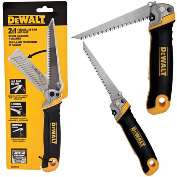 اره و سوهان DWHT0-20123 تاشو دیوالت مناسب برای کناف کاری دو کآره ( اره و سوهان ). تاشو ضامنی قفل کن دار ابعاد در حالت بازشو اره : ۳x۳.۵x۲۹.۵ سانتی متر ابعاد در حالت بازشو سوهان : ۳x۳.۵x۲۵.۵ سانتی متر ابعاد در حالت بسته : ۳x۳.۵x۱۶ سانتی متر. تیغه های استیل ضد زنگ با بالاترین آلیاژ طراحی تیغه های سریع برش که ۵۰ درصد سرعت کار را افزایش می دهد
