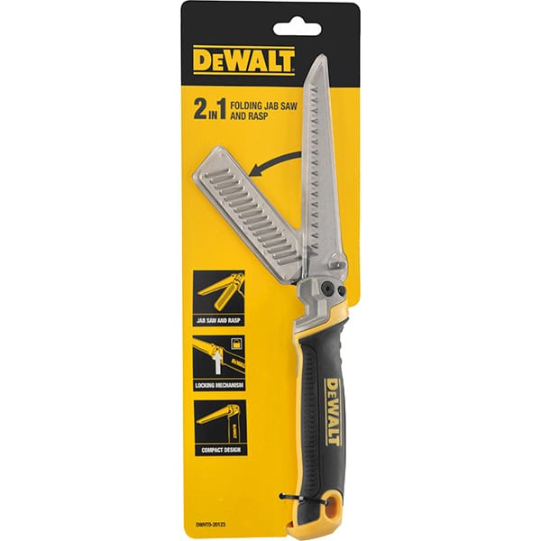 اره و سوهان DWHT0-20123 تاشو دیوالت مناسب برای کناف کاری دو کآره ( اره و سوهان ). تاشو ضامنی قفل کن دار ابعاد در حالت بازشو اره : ۳x۳.۵x۲۹.۵ سانتی متر ابعاد در حالت بازشو سوهان : ۳x۳.۵x۲۵.۵ سانتی متر ابعاد در حالت بسته : ۳x۳.۵x۱۶ سانتی متر. تیغه های استیل ضد زنگ با بالاترین آلیاژ طراحی تیغه های سریع برش که ۵۰ درصد سرعت کار را افزایش می دهد