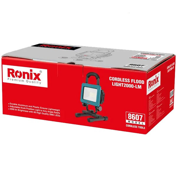 اگر به فکر خرید یک نورافکن مناسب برای نوردهی در فضای باز، کمپینگ، چادر، گشتزنی، پیادهروی، ماهیگیری در شب، کار در باغ و ... هستید، نورافکن شارژی 20 ولت 2000 لومن 8607 رونیکس، توصیه ما به شما است. با ما همراه باشید و مشخصات این ابزار کاربردی را بررسی کنید.