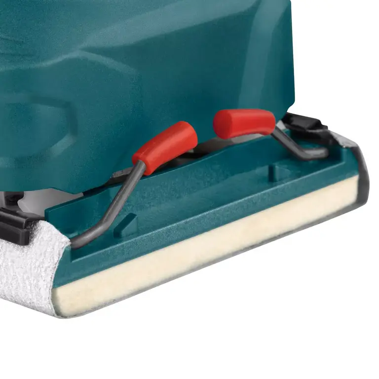 ابعاد صفحه سنباده این ابزار 110×100 میلیمتر است و مجهز به سیستم پیشرفته اتصال مناسب صفحه سنباده به کفی آلومینیومی که موجب افزایش کارایی دستگاه میشود.