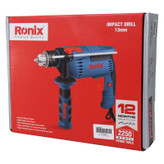 ارائهشده در جعبه رنگی رونیکس همراه با دستهی جانبی، میلهی تنظیم عمق برای اندازهگیری دقیق عمق سوراخکاری، آچار سه نظام