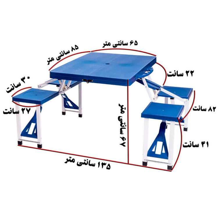 ابعاد باز شده میز و صندلی 4 نفره همسفر